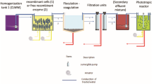 Calcium alginate–starch entrapped bitter gourd peroxidase has been employed for the treatment of a textile industrial effluent in batch as well as in continuous reactor. The textile effluent was recalcitrant to decolorization by bitter gourd peroxidase; thus, its decolorization was examined in the presence of a redox mediator, 1.0 mM 1-hydroxybenzotriazole. Immobilized enzyme exhibited same pH and temperature optima for effluent decolorization as attained by soluble enzyme. Immobilized enzyme could effectively remove more than 70% of effluent color in a stirred batch process after 3 h of incubation. Entrapped bitter gourd peroxidase retained 59% effluent decolorization reusability even after its tenth repeated use. The two-reactor system containing calcium alginate–starch entrapped enzyme retained more than 50% textile effluent decolorization efficiency even after 2 months of its operation. The absorption spectra of the treated effluent exhibited a marked difference in the absorption at various wavelengths as compared to untreated effluent. The use of a two-reactor system containing immobilized enzyme and an adsorbent will be significantly successful for treating industrial effluents at large scale, and it will help in getting water free from aromatic pollutants.