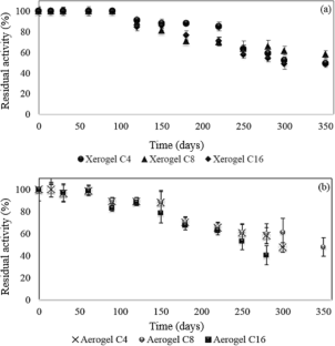 Zubiolo, C., Santos, R. C. A., Carvalho, N. B., Soares, C. M. F., Lima, A. S., & De Aquino Santana, L. C. L. (2014). Encapsulation in a sol-gel matrix of lipase from Aspergillus niger obtained by bioconversion of a novel agricultural residue. Bioprocess and Biosystems Engineering, 37(9), 1781–1788. https://doi.org/10.1007/s00449-014-1151-3.