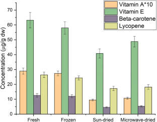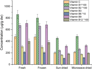 Karatas F, Baysar A, Alpaslan A (2017) A comparison of vitamin and folic acid levels of sun and microwave dried Capsicum annuum L. J Food Process Preserv 41(6):e13275