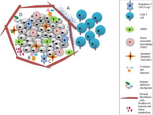 Scarfò, I., & Maus, M. V. (2017). Current approaches to increase CAR T cell potency in solid tumors: Targeting the tumor microenvironment. Journal for Immunotherapy of Cancer., 5(1), 28.