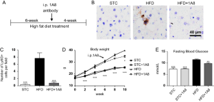 To achieve the aim of the study, C57BL/6 J mice were fed with high fat diet for 6 weeks before treated with neutrophil deplete antibody 1A8 or isotype control (200 μg/ mouse every week) for another 4 weeks.