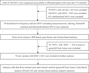 We performed targeted NGS of nine Wnt signaling genes in 400 Chinese postmenopausal women, including 226 cases with decreased bone mineral density (BMD) and 174 controls with normal values. Proxy External Controls Association Test (ProxECAT) and logistic regression analysis were performed by data from internal cases (n = 226) and Genome Aggregation Database (gnomAD) East Asian controls (n = 9435).