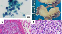 For immunohistochemical analysis, 4 μm serial sections were stained with a panel of antibodies (Table 2) using the streptavidin–biotin–peroxidase complex technique. Negative (primary antibody replaced by non-immune mouse serum) and positive controls were included in each slide run. All controls gave satisfactory results. A minimum of 10% positive staining was adopted as a cut-off for all markers. For p63 and TTF-1, only nuclear staining was considered specific, while for other markers, only cytoplasmic staining was accepted. Staining for GAL-3 was deemed positive when observed in both nucleus and cytoplasm. Positive nuclear and cytoplasmic staining for OCT4 and SALL4 was evaluated.