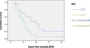 We retrospectively collected data of gastric and gastro-esophageal cancer patients treated from January 2015 till December 2016. Sixty-one patients were included. Pre-treatment NLR was calculated. We extracted the different clinic-epidemiological and pathological data. Event-free and overall survivals were plotted using Kaplan-Meier curves.