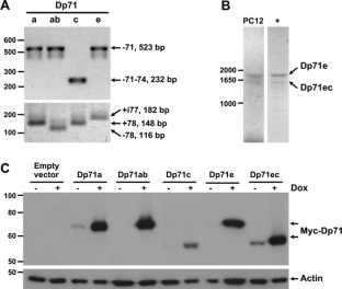 Austin RC, Howard PL, D’Souza VN, Klamut HJ, Ray PN (1995) Cloning and characterization of alternatively spliced isoforms of Dp71. Hum Mol Genet 4:1475–1483