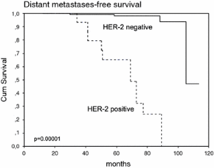 Press MF, Bernstein L, Thomas PA, et al. Her-2/neu gene amplification characterized by fluorescence in situ hybridization: poor prognosis in node-negative breast carcinomas. J Clin Oncol. 1997;15(8):2894–904.