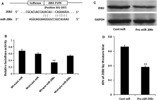 Hurteau GJ, Carlson JA, Spivack SD, Brock GJ. Overexpression of the microRNA hsa-miR-200c leads to reduced expression of transcription factor 8 and increased expression of E-cadherin. Cancer Res. 2007;67:7972–6.