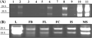 Sharma, A. D., Gill, P. K., & Singh, P. (2003). RNA isolation from plant tissues rich in polysaccharides. Analytical Biochemistry, 314, 319–321. doi:10.1016/S0003-2697(02)00689-9.