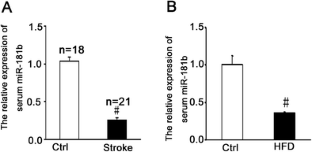 Peng Z et al (2013) Downregulation of miR-181b in mouse brain following ischemic stroke induces neuroprotection against ischemic injury through targeting heat shock protein A5 and ubiquitin carboxyl-terminal hydrolase isozyme L1. J Neurosci Res 91(10):1349–1362