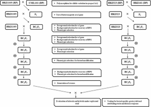 Maize is a valuable source of food and feed worldwide. Maize endosperm protein is, however nutritionally poor due to the reduced levels of two essential amino acids, lysine and tryptophan. In this study, recessive opaque2 (o2) allele that confers enhanced endosperm lysine and tryptophan, was introgressed using marker-assisted backcross breeding into three normal inbred lines (HKI323, HKI1105 and HKI1128). These are the parental lines of three popular medium-maturing single cross hybrids (HM4, HM8 and HM9) in India. Gene-based simple sequence repeat (SSR) markers (umc1066 and phi057) were successfully deployed for introgression of o2 allele. Background selection using genome-based SSRs helped in recovering \(>96\%\) of recurrent parent genome. The newly developed quality protein maize (QPM) inbreds showed modified kernels (25–50% opaqueness) coupled with high degree of phenotypic resemblance to the respective recipient lines, including grain yield. In addition, endosperm protein quality showed increased lysine and tryptophan in the inbreds to the range of 52–95% and 47–118%, respectively. The reconstituted QPM hybrids recorded significant enhancement of endosperm lysine (48–74%) and tryptophan (55–100%) in the endosperm. The QPM hybrids exhibited high phenotypic similarity with the original hybrids for morphological and yield contributing traits along with responses to some major diseases like turcicum leaf blight and maydis leaf blight. The grain yield of QPM hybrids was at par with their original versions under multilocation testing. These elite, high-yielding QPM hybrids with improved protein quality have been released and notified for commercial cultivation, and hold significant promise for improving nutritional security.