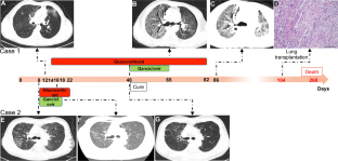 Among 251 cases analyzed, 29 (11.6%) patients with CIP were identified, of whom 12 (4.78%) cases had grade 3–4 CIP. All 12 patients with grade 3–4 pneumonitis were CMV-IgG-positive, indicating a previous CMV infection. Except for one CMV-DNA-positive patient, the other patients were CMV-DNA-negative. All but one patient was CMV pp65 antigen-positive, indicating an early reactivation of the virus. The histological features of CMV pneumonia were not found in all available lung tissues, including lung transplantation pathology in one patient and lung biopsies in three patients. Except for one patient who received delayed antiviral therapy, the symptoms improved after glucocorticoid combined with antiviral therapy.
