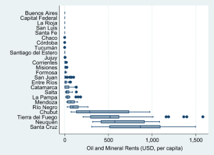 Funding for this project was provided by the Targeted Research Projects (Proyectos de Investigación Orientados, PIO) CONICET - YPF 2015-2016, PIP133 201401 00022 CO. We conducted fieldwork for this project in the provinces of Neuquén (April 2016), Mendoza (August 2016), Chubut (October2016), Río Negro (November 2016), Santa Cruz (September 2017), and Tierra del Fuego (December 2017). We thankfully acknowledge the helpfulcomments of Diego Díaz Rioseco, Kent Eaton, Juan Gutiérrez-Rodríguez, Juan Pablo Luna, Osmel Manzano, Sebastián Mazzuca, José Carlos Orihuela,Richard Snyder, and the participants at the XXXVI International Congress of the Latin American Studies Association (LASA), Barcelona, May 22-25, 2018;the Research Seminar Center for Latin American and Caribbean Studies, Watson Institute for International and Public Affairs, Brown University, April 5,2018; the Workshop on Sub-National Politics in Latin America, Pontificia Universidad Católica de Chile, Santiago, Chile, November 30-December 1, 2017;and the XXXV International Congress of the Latin American Studies Association, Lima, Peru, April 29-May 1, 2017. We also thank Belén Cáceres, RocíoMoris, and Julieta Casas who provided crucial research assistance for this project, and the personnel from the provincial ministries and public offices fortheir interviews and help in getting access to data and information. Any mistake is the sole responsibility of the authors.
