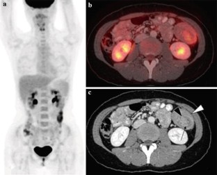 Inflammatory pseudotumor is a rare benign lesion mimicking malignancy both clinically and radiologically. An accurate diagnosis is still difficult and is based on the histological examination. Since inflammatory pseudotumor is exceptionally rare in the colon, this unexpected lesion can be mistaken for malignancy. We report the first case of inflammatory pseudotumor in the colon that showed 18F-fluorodeoxyglucose (FDG) uptake and acted as the lead point causing colocolic intussusception.
