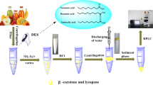 Sereshti, H., Ahmadvand, M. & Asgari, S. A Rapid Quantification of β-Carotene in Fruits and Vegetables by Dispersive Liquid–Liquid Microextraction Coupled with UV–Vis Spectrophotometry: Optimized by Response Surface Methodology. Food Anal. Methods 7, 1481–1488 (2014). https://doi.org/10.1007/s12161-013-9777-3