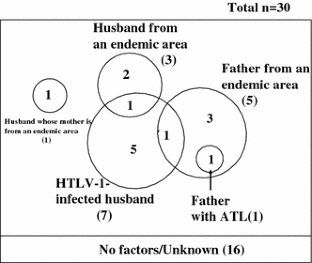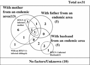 Stuver S, Tachibana N, Okayama A, et al. Heterosexual transmission of human T cell leukemia/lymphoma virus type I among married couples in southwestern Japan: an initial report from Miyazaki cohort study. J Infect Dis. 1993;167:57–65.