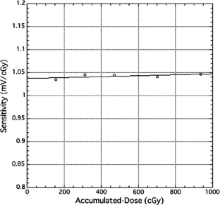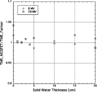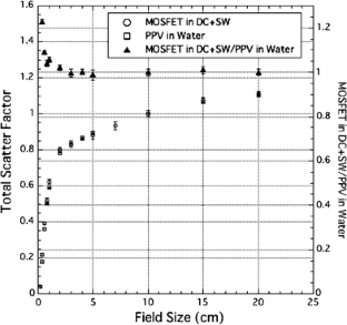 Dosimetric characteristics of a metal oxide–silicon semiconductor field effect transistor (MOSFET) detector are studied with megavoltage photon beams for patient dose verification. The major advantages of this detector are its size, which makes it a point dosimeter, and its ease of use. In order to use the MOSFET detector for dose verification of intensity-modulated radiation therapy (IMRT) and in-vivo dosimetry for radiation therapy, we need to evaluate the dosimetric properties of the MOSFET detector. Therefore, we investigated the reproducibility, dose-rate effect, accumulated-dose effect, angular dependence, and accuracy in tissue-maximum ratio measurements. Then, as it takes about 20 min in actual IMRT for the patient, we evaluated fading effect of MOSFET response. When the MOSFETs were read-out 20 min after irradiation, we observed a fading effect of 0.9% with 0.9% standard error of the mean. Further, we applied the MOSFET to the measurement of small field total scatter factor. The MOSFET for dose measurements of small field sizes was better than the reference pinpoint chamber with vertical direction. In conclusion, we assessed the accuracy, reliability, and usefulness of the MOSFET detector in clinical applications such as pinpoint absolute dosimetry for small fields.