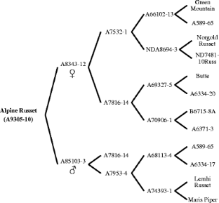 The authors thank Margaret Bain, Mel Chappell, Lorie Ewing, Nora Fuller, Mark Fristad, Darren Hall, Charlene Miller, Tom Salaiz, Brian Schneider, Lura Schroeder, Penny Tubbs, Steven Wheeler, and Jim Whitmore, as well as our collaborators in the Western Regional Potato Variety Trials, and the Idaho, Oregon and Washington Potato Commissions for their contributions to the development and release of Alpine Russet. We also express thanks to Dave Hammond from Lamb Weston, Kennewick, WA as well as our other industry cooperators for their substantial contributions to this research effort. Development of Alpine Russet was partially funded by the USDA/CSREES Special Potato Program Grant.