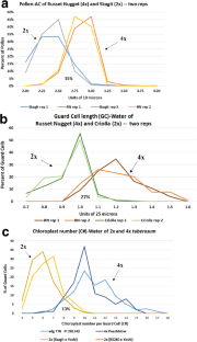 Thanks to USPG staff Mrs. Renee Sauer, ploidy-scoring volunteers, and the University of Wisconsin Peninsula Agricultural Research Station (PARS) for their help. We observe that even a simple study like this reveals several related facets which deserve more focused attention-- for example, the question of how subliminal perception affects the ploidy verdict when the researcher selects and measures only a few cells among many thousands in the field of view. Unrelated ideas, sometimes even more interesting that the original theme may be suggested, like using pollen swelling as an indicator of viability or guard cell size distributions to separate taxa. Isaac Asimov remarked that scientific discovery springs more from a “that’s funny” moment than “Eureka!” Similarly, the late legendary UW potato germplasm researcher and former genebank director Stan Peloquin remarked that while we pursue carefully planned-out hypotheses, just being busy working with germplasm and noticing unexpected phenomena that appear is often actually the start of the path to important scientific discoveries.