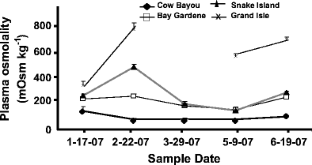 We thank Lane Simmons, Charlie Demas, and David Walters with the USGS Water Resources Division for their help in acquiring water quality data and in providing logistical field support to collect field samples. Thanks to Sandra Casas for helping in the field and for reviewing the manuscript and to Chris Dungan for comments on a draft of this manuscript. Also thanks to John Supan for providing oysters for the research. This research was funded through the National Sea Grant Gulf Oyster Industry Program LSU AgCenter contribution number 2008-242-2215. The use of trade, product, industry or firm names, or products is for informative purposes only and does not constitute an endorsement by the US Government or the US Geological Survey.