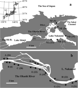Kunii, H. 2001. Distribution of endangered aquatic macrophytes in Lakes Shinji and Nakaumi. Laguna 8: 95–100. in Japanese with English abstract.