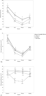Dawes, C.J., K. Siar, and D. Marlett. 1999. Mangrove structure, litter and macroalgal productivity in a northern most forest of Florida. Mangroves and Salt Marshes 3 (4): 259–267. https://doi.org/10.1023/A:1009976025000.