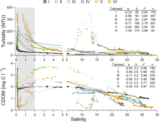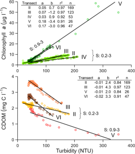 Nieke, B., R. Reuter, R. Heuermann, H. Wang, M. Babin, and J. Therriault. 1997. Light absorption and fluorescence properties of chromophoric dissolved organic matter (CDOM), in the St. Lawrence Estuary (Case 2 waters). Continental Shelf Research 17: 235–252. https://doi.org/10.1016/S0278-4343(96)00034-9.