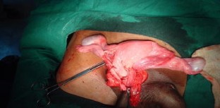 Persistent Müllerian duct syndrome is a rare form of internal male pseudohermaphroditism caused by defects in synthesis or action of Müllerian-inhibiting factor, due to which Müllerian duct derivatives, such as uterus, fallopian tube, and upper vagina, are normally present in 46XY males. Here, we report a 26-year-old male with right-sided obstructed inguinal hernia with left undescended testis. On exploration, hernial sac containing bowel loops, uterus with fallopian tubes, upper vagina, and testes were present.