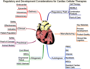 Developers of cell-based therapies intended for the treatment of cardiovascular indications must address a number of regulatory issues related to the manufacturing and delivery of living cell products to patients. This article highlights issues that must be considered regarding the cell and tissue source and ancillary materials, the development of a regulatory acceptable manufacturing process, the importance of product characterization as a measure of product quality and clinical site logistics for handling and storing living cell products. Finally, regulatory issues regarding the various delivery systems commonly used for delivery cells to cardiac tissues are touched upon.