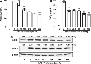 Dirsch, V.M., A.K. Kiemer, H. Wagner, and A.M. Vollmar. 1997. The triterpenoid quinonemethide pristimerin inhibits induction of inducible nitric oxide synthase in murine macrophages. European Journal of Pharmacology 336: 211–217.