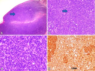Tonsillar lymphoma usually presents as unilateral or bilateral enlargement or as an ulcerative or fungating lesions. Most lymphomas that involve the tonsils are diffuse large B-cell lymphomas and primary low grade lymphomas are exceptional. We report a case of primary B-cell chronic lymphocytic leukemia/small lymphocytic lymphoma (CLL/SLL) affecting tonsils with interfollicular pattern of infiltration in a 54-year-old female who clinically presented with bilateral tonsillar enlargement, sore throat, dysphagia and respiratory difficulty, unresponsive to the conservative treatment. To the best of our knowledge, till date only six cases of CLL/SLL infiltrating tonsils have been reported in the English literature, three of these were known cases of CLL/SLL prior to tonsillectomy. In the present case diagnosis of CLL/SLL was first time established on tonsillar histomorphology and that too with an unusual interfollicular pattern of infiltration.