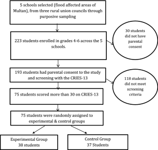 The present study is a pilot study to examine the initial effectiveness of the Support for Students Exposed to Trauma (SSET) program (Jaycox et al. in Support for Students Exposed to Trauma: the SSET program. Lesson plans, worksheets, and materials. TR-675, RAND, Santa Monica, CA, 2009) in reducing PTSD symptoms and building resilience and social support among children living in flood-affected rural areas of Southern Punjab, Pakistan. One hundred and ninety-three children were screened for symptoms of post-traumatic stress, and 38% met eligibility criteria. Children were then randomly assigned into experimental (n = 38) and control (n = 37) groups. The findings of the study showed a significant reduction in PTSD symptoms, and improvement in resilience, and perceived social support in the experimental group. The result of the study demonstrates that SSET, delivered by a clinically trained provider, may be an effective intervention for treating traumatic stress symptoms among children affected by natural disasters like flooding, particularly in under-resourced contexts. This pilot lays the initial groundwork for SSET in this context, which may ultimately be implemented by non-clinicians to address trauma-related psychological issues.