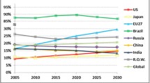 LCA of animal production involves mainly feed, water, and land use. Water and land use for the sole production of the animal is not very important but the water and land use embodied into the production of feeds are significantly more important, leading to two different production systems: extensive and intensive [56]. In extensive production systems, farmers produce the feed needed locally. The number of animals in such systems is restricted in order not to exceed the grass or crop feed capacity of the land and in so doing minimize the risk of soil degradation [14, 16, 60] or deforestation [18, 19]. In intensive production systems, animals are more densely packed into barns and the feed is purchased from specialized companies preparing high-energy rations from grains that may be located anywhere in the world. This “distanciation” between crop and manure production forces the injection of fertilizers to the crop land and the disposal of excess manure to nearby fields which could lead to water and air pollution [37].