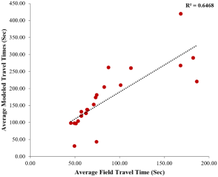 This study evaluates the transferability of the calibrated parameters for mobility performance of transit signal priority (TSP) in a microscopic simulation environment. The analysis is based on two transit corridors in Florida. Two microscopic simulation VISSIM models, a base model, and a TSP model are developed for each corridor. The simulation models are calibrated to represent field conditions. Three driving behavior parameters that significantly affect the simulation results are identified and selected for the transferability study. A genetic algorithm technique is used to obtain an improved value for each of the three parameters for both transit corridors. Calibrated parameters obtained from the first study corridor, which maximize the correlation between simulated and field travel time, are used to estimate the second study corridor’s travel time and compare the results to parameters optimized specifically for the second study corridor. The study uses the application-based and estimation-based approaches for the analysis. Overall, the TSP model parameter results are generally transferable between the two transit corridors. A percentage change of 9.25 and 18.50% are observed for two of the parameters between two TSP corridors which indicates that these two parameters are transferable. On the other hand, one of the parameters with a high percentage change value of 23.80% between the two TSP corridors are not transferable. The findings of this study may present key considerations for transportation agencies and practitioners when planning future TSP deployments.