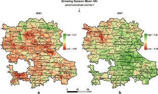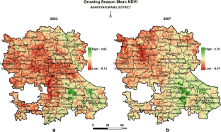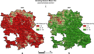 We acknowledge the US Geological Survey (USGS) for providing the temporal MODIS 250m products (https://earthexplorer.usgs.gov/) through the Earth Explorer Data Gateway. The authors are thankful to all India Coordinated Research Project for Dryland Agriculture (CRIDA), Anantapuramu and Minor Irrigation, Department of Command Area Development, Anantapuramu, for their support in providing the climatic data for the study area. The support of Shri K.C. Arun Kumar, Young Professional—II in data processing and GIS mapping is duly acknowledged. We sincerely thank anonymous reviewers whose constructive comments and suggestions greatly improved the manuscript.