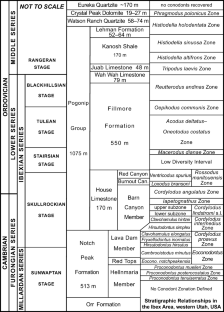 Taylor, M. E., & Landing, E. (1982). Biostratigraphy of the Cambrian–Ordovician transition in the Bear River Range, Utah and Idaho, western United States. In M. G. Bassett, & W. T. Dean, (Eds.), The Cambrian–Ordovician Boundary: sections, fossil distributions, and correlations. National Museum of Wales, Geological Series No. 3, 181–191.