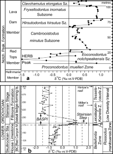 Wright, J., Miller, J. F., & Holser, W. T. (1987). Conodont chemostratigraphy across the Cambrian–Ordovician boundary: western USA and southeast China. Conodonts: Investigative Techniques and Applications, Chichester, Ellis Horwood Limited, 256–283.