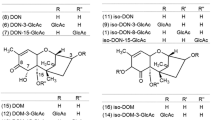 Fruhmann P, Warth B, Hametner C, Berthiller F, Horkel E, Adam G, Sulyok M, Krska R, Fröhlich J (2012) Synthesis of deoxynivalenol-3-β-D-O-glucuronide for its use as biomarker for dietary deoxynivalenol exposure. World Mycotoxin J 5:127–132