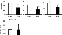 Arai T, Kim H, Hirako S, Nakasatomi M, Chiba H et al (2013) Effects of dietary fat energy restriction and fish oil feeding on hepatic metabolic abnormalities and insulin resistance in KK mice with high-fat diet-induced obesity. J Nutr Biochem 24:267–273