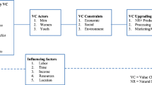 This research took place in the frame of the GlobE project “Trans-SEC: Innovating pro-poor strategies to safeguard food security using technology and knowledge transfer: a people-centred approach” financed by the German Federal Ministry of Education and Research and the Federal Ministry for Economic Cooperation and Development. Authors would like to express thanks to all participants in the CSSs, translators (Shani, Nengi, Devotha and Davis), and local facilitators (particularly the support provided by the Agricultural Research Institutes of Tanzania and the National Network of Small-Scale Farmers’ Groups in Tanzania (MVIWATA). Special thanks also to Anja Faße and her team for providing access to the household survey data. We also thank Raul Fernandez for work on survey data preparation and to Markus Frank for formatting assistance. Authors gratefully acknowledge the detailed input of two anonymous reviewers.
