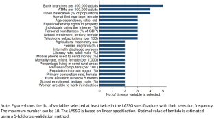 Standardized coefficients of the post-selected variables from the Lasso liner model are shown in the table. Optimal value of lambda is estimated using a fivefold cross-validation methods.