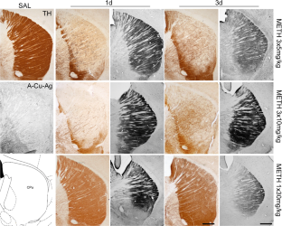 Ares-Santos S, Granado N, Espadas I, Martinez-Murillo R, Moratalla R (2014) Methamphetamine causes degeneration of dopamine cell bodies and terminals of the nigrostriatal pathway evidenced by silver staining. Neuropsychopharmacology 39:1066–1080