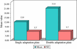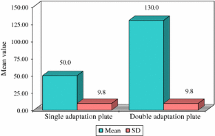 The present study demonstrated that double adaptation plating technique had greater resistance to compression load than single adaptation plating technique and it shows more favorable biomechanical behavior.