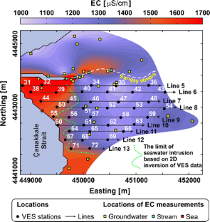 Gürçay S, Kaya MA (2006) Investigation of seawater intrusion in Çanakkale city surrounding by means of resistivity method. In: Symposium on recent applications in engineering geology, 25 May 2006, Denizli, Turkey (in Turkish)