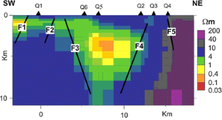 Masero W, Fischer G, Schnegg P (1997) Electrical conductivity and crustal deformation from Magnetotelluric results in the region of the Araguainha impact, Brazil. Phys Earth Planet Inter 101:271–289
