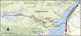 Smith BA, Hunt BB, Andrews AG, Watson JA, Gary MO, Wierman DA, Broun AS (2014) Hydrogeologic influences of the Blanco River on the Trinity and Edwards Aquifers, Central Texas, USA. In: Andreo B, Carrasco F, Duran JJ, Jimenez P, Lamoreaux JW (eds) Hydrogeological and Environmental Investigations in Karst Systems, Springer Environmental Earth Sciences, pp 153–161