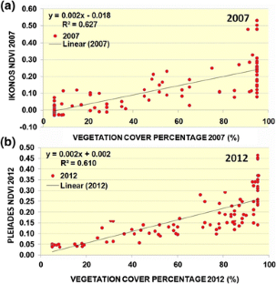 Carlson TN, Ripley DA (1997) On the relation between NDVI, fractional vegetation cover, and leaf area index. Remote Sens Environ 62:241–252