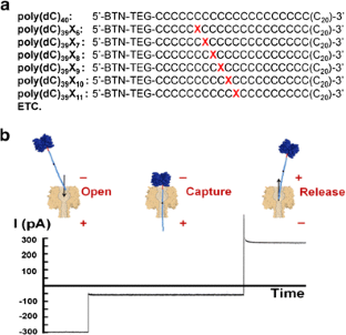 Purnell, R. F., Mehta, K. K., Schmidt, J. J. (2008). Nucleotide identification and orientation discrimination of DNA homopolymers immobilized in a protein nanopore. Nano Letters, 8, 3029–3034.