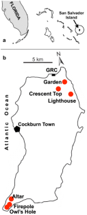 This work was undertaken with the permission and logistical support of staff at the Gerace Research Center on San Salvador Island, Bahamas. We thank the Bahamian Government for granting the permission to carry out this research. J. McIlrath is thanked for comments on a previous version of this manuscript. Part of this work received support from the PN-II-PT-PCCA-2011-3.2-1064, Grant No 73/2012 (C. Cosma).
