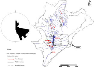 The Cheria basin is formed primarily by succession of three aquifers; from the more important one to the less important. The first one is the Maestrichtian permeable limestone aquifer which exists on the border. The second is Eocene fissured karstic limestone aquifer that constitutes a great potential of water in the study area. Its thickness is varied from 10 to 200 m. The third is mio-plio-quaternary alluvial aquifer which has no hydraulic interest due to the drought of the latest decade, The basin is affected by several tectonic phases and neotectonic movements. Compared with subsurface karstic phenomena (karstified fractures), these data allow us to propose a diagram of the preferential directions evolution of the karstifications (orientations N40 and N140 principally). There are four significant groups obtained from the rose diagram, these groups have been classified according to their order of importance: the first group is 130°–140°E; the second group is 100°–110°E; the third group is 40°–50°E; and the fourth group is 0°E.