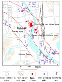 Xuzhou urban region has been seriously threatened by the geological hazards, such as karst collapse. Several collapses that had widely occurred were distributed in the ancient Yellow River Fault zone. Obviously, they were zonal and being controlled by the river fault zone. The karst was developing well in the fault zone and it connected the Cambrian and the Ordovician aquifer which made karst groundwater was very rich. The long-term pumping groundwater made the level up and down around the bedrock surface and the sandy soil covered directly on the karst aquifer which deposited with the form of paleochannels had changed. That is the main reason for the occurrence of karst collapse.
